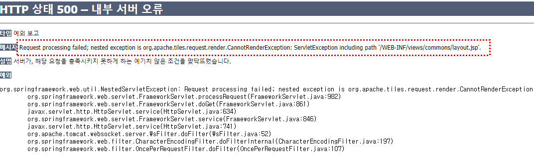 오류의 원인은 layout.jsp 파일인 것으로 확인되었다.