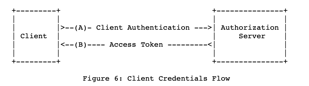 - Client Credentials Grant : 애플리케이션이 리소스 소유자의 리소스 대신 자체적인 리소스에 대한 접근이 필요할 때 사용할 수 있는 그랜트 타입이다. 이전에는 서드파티 애플리케이션이 리소스 소유자 대신 리소스 소유자의 리소스에 접근하는 형태였지만, 클라이언트 자격증명 그랜트 타입은 인증서버에 등록된 클라이언트이기만 하면 리소스에 접근할 수 있는 특별한 형태의 그랜트 타입이다. 또한 사용자와의 연관이 존재하지 않기 때문에 리프레시 토큰을 발급하지 않는다. 토큰이 만료되면 자체적으로 새로운 액세스 토큰을 발급받는다.