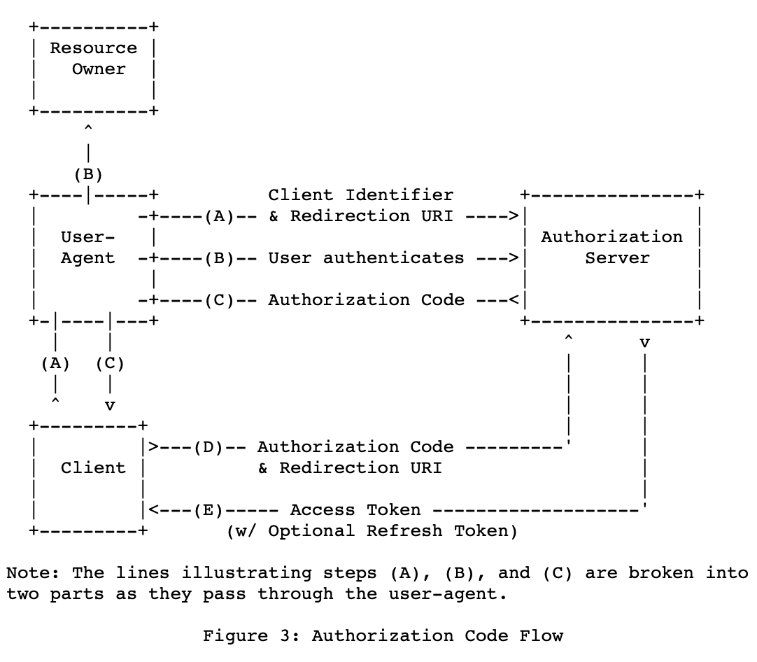 위 그림은 RFC6749 표준 문서에 나와있는 그림이다.(https://tools.ietf.org/html/rfc6749)