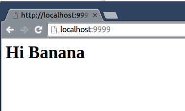 Chrome 브라우저에 현재 listen하고 있는 port번호를 입력해 주면 web server에 접속이 가능합니다. res에 담긴 Hi Banana가 화면에 출력되는 것을 확인 할 수 있습니다.