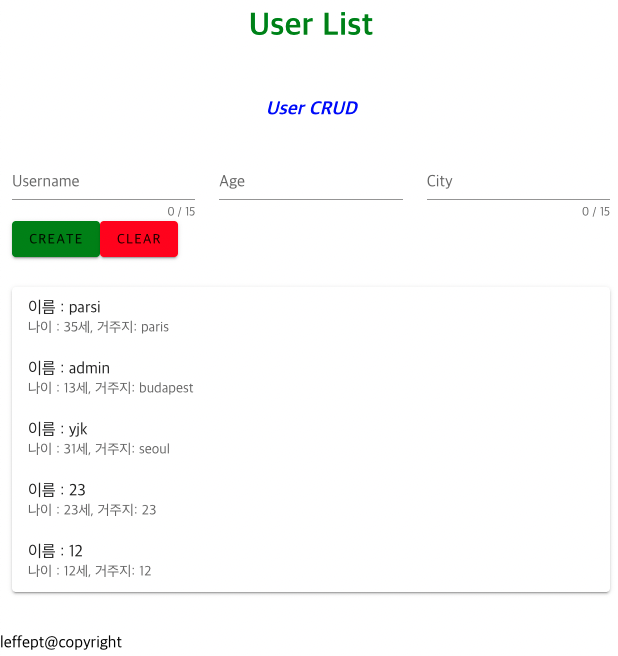 Read, Create에 대한 기능을 만들었으므로 다음포스팅에서는 Delete 기능을 구현해볼 것이다.